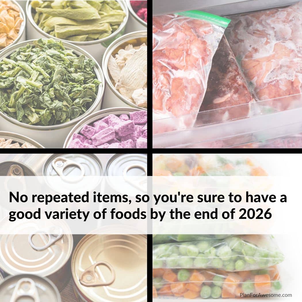 This is for BOTH long-term and short-term food storage. The goal is to get started and work on both simultaneously. In general, there will be one long-term food item recommended once a month, and the other weeks of the month will be on the shorter-term side.